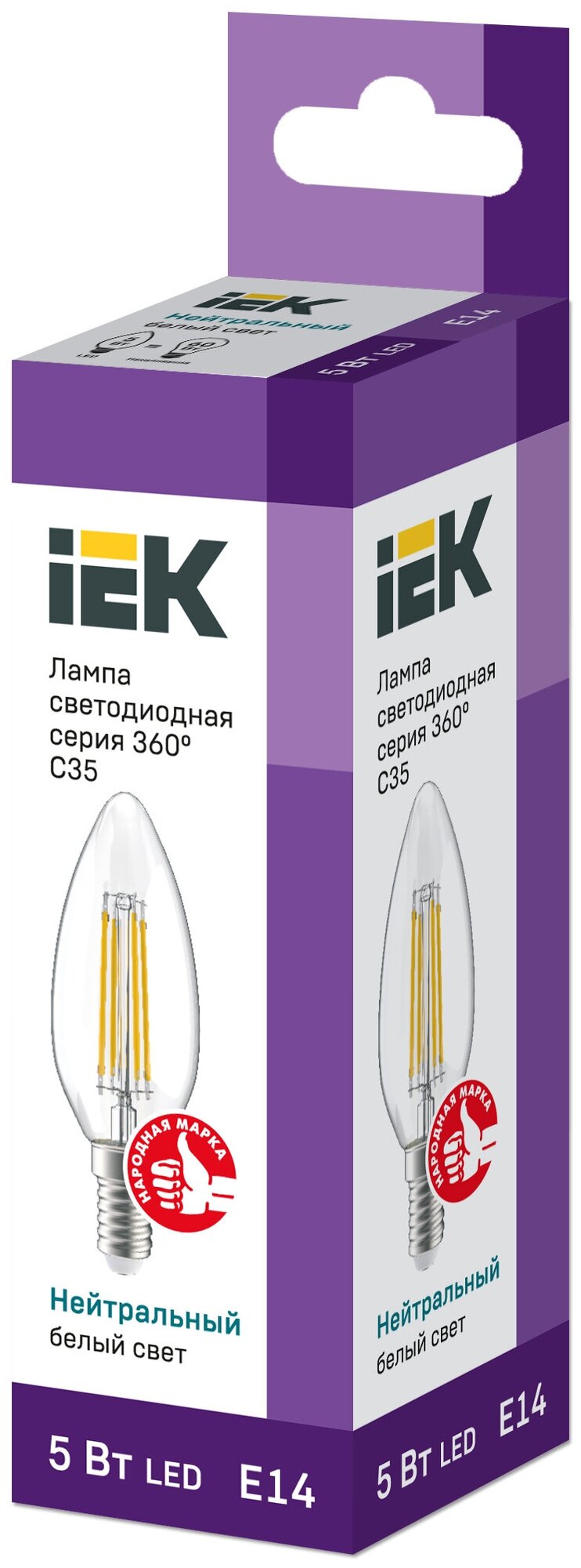 Лампа светодиодная C35 свеча прозр. 5Вт 230В 4000К E14 серия 360° IEK LLF-C35-5-230-40-E14-CL (1 шт.)