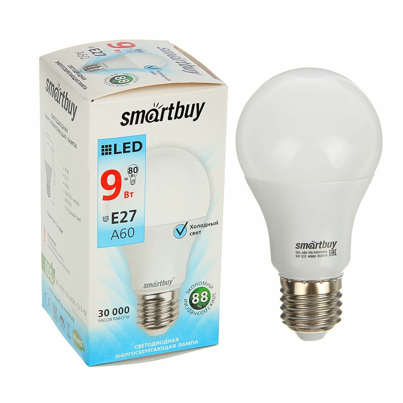 Лампа cветодиодная Smartbuy, E27, A60, 9 Вт, 4000 К, дневной белый свет интересное: