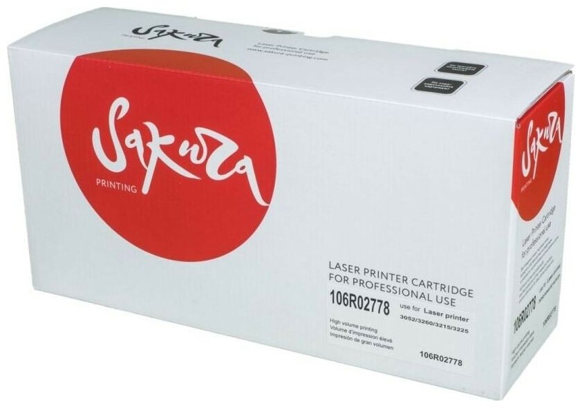 Ниже Вы можете прочитать отзывы на Картридж Sakura 106R02778 для Xerox Phaser 3052/3260/ Wc3215/3225, черный, 3000 к.(обновленный чип), ознакомится с подробными характеристиками, посмотреть интересные обзоры и фотографии на Картридж Sakura 106R02778 для Xerox Phaser 3052/3260/ Wc3215/3225, черный, 3000 к.(обновленный чип).