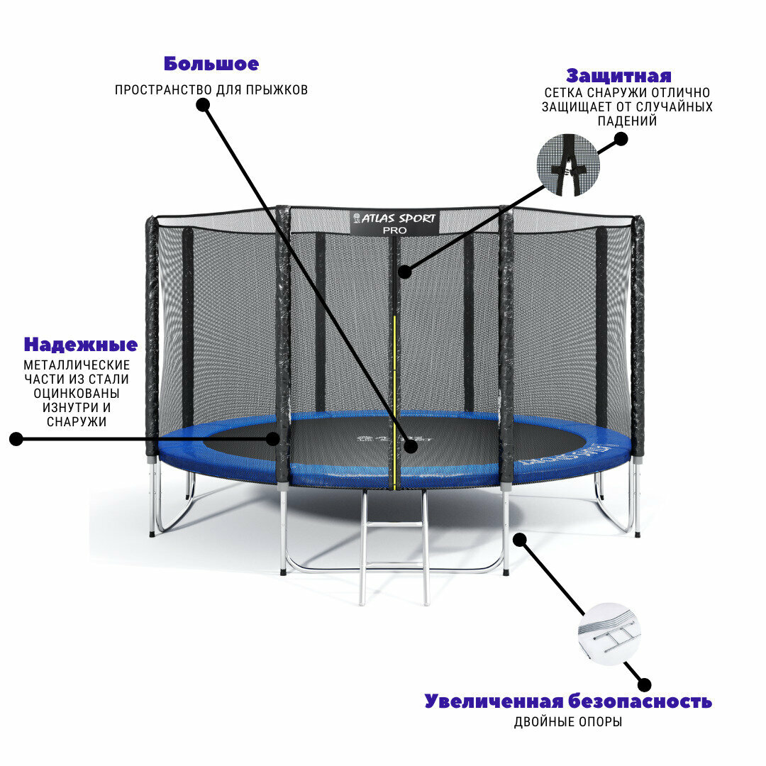Батут Atlas Sport 435 см (14ft) PRO (усиленные опоры) BLUE интересное: