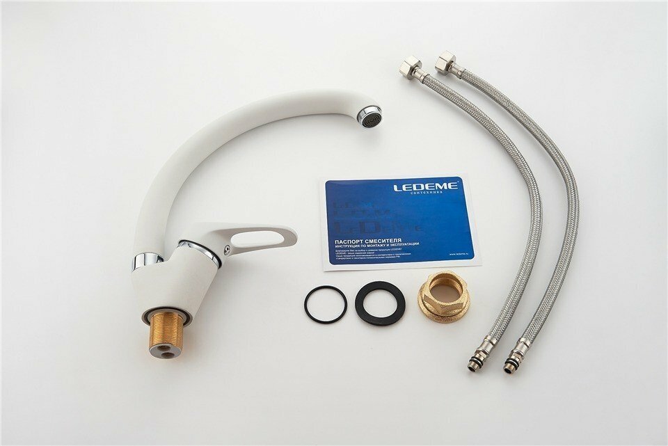 Смеситель для кухни, "утка", карт.35мм, гайка, белый Ledeme, 1/10; L5913H