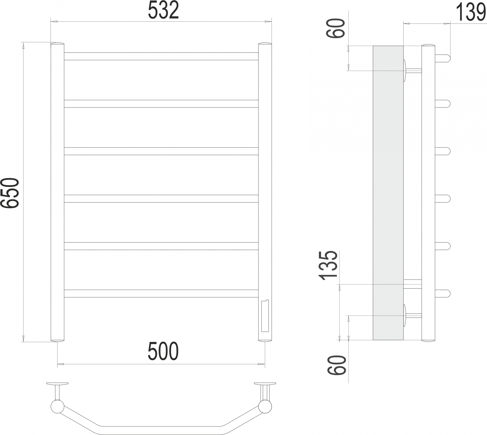 Полотенцесушитель TERMINUS Ното П6 (ШВ:500х650) электро, нерж. сталь, quick touch