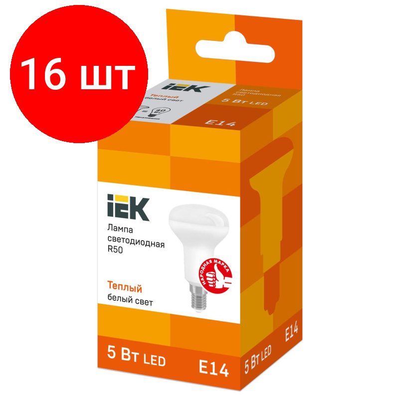 Комплект 50 штук, Лампа светодиодная IEK ECO R50 LLE-R50-5-230-30-E14 5Вт 3000К E14