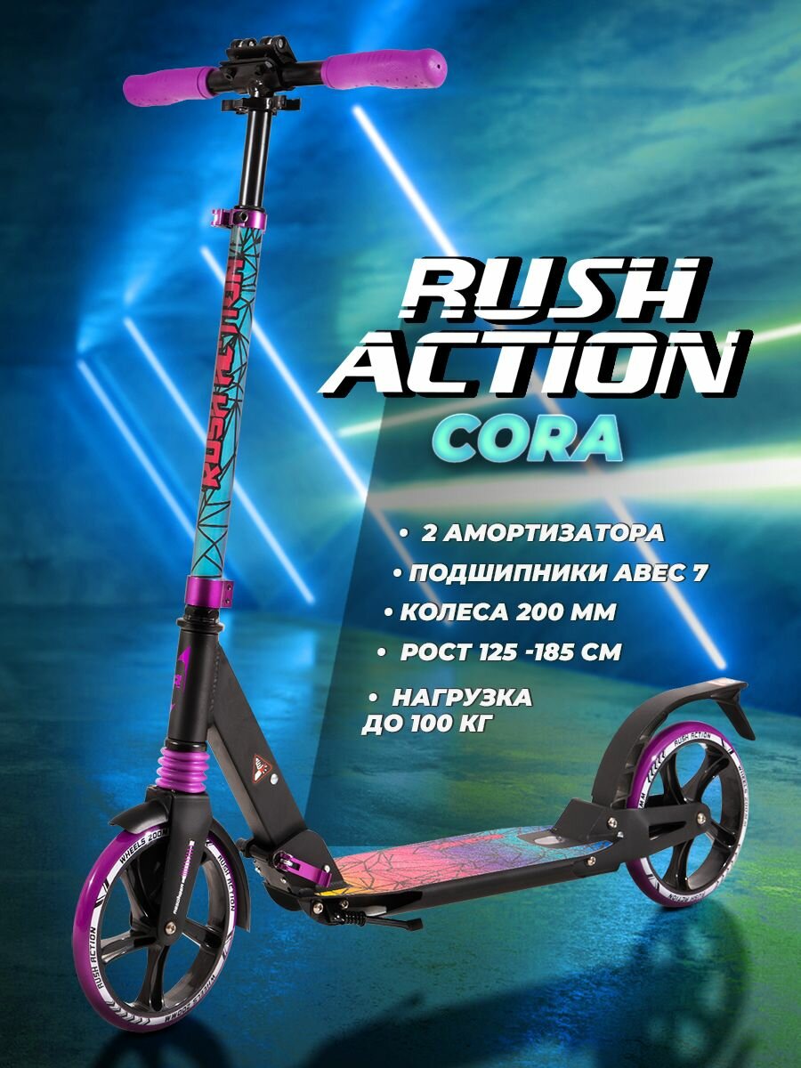 Самокат Rush Action двухколёсный S200A pink/M-7A CORA, 200 мм интересное: