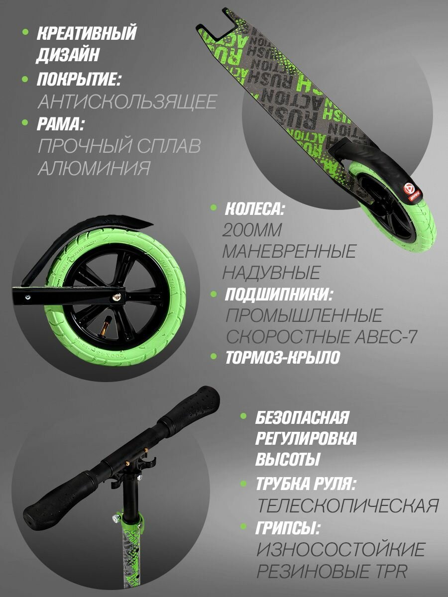 Самокат Rush Action двухколёсный SKL-037A-2.1 Raptor Black-green, 200 мм интересное: