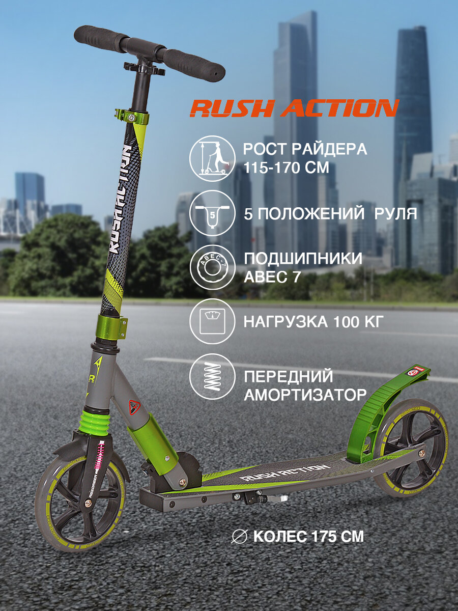 Самокат Rush Action двухколёсный SKL-046-175 Gray, 175 мм интересное:
