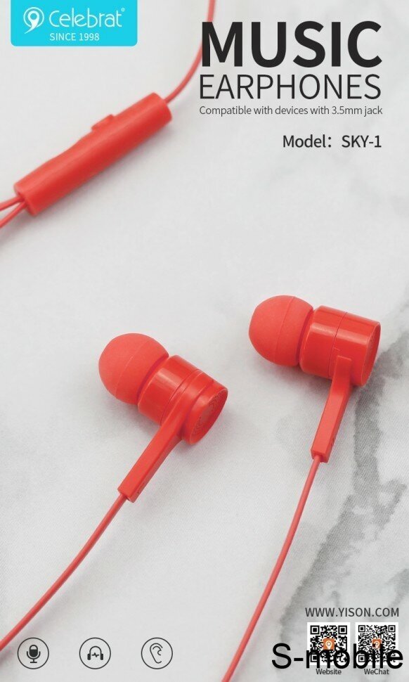 Проводные наушники с гарнитурой Yison Celebrat Sky-1, красный