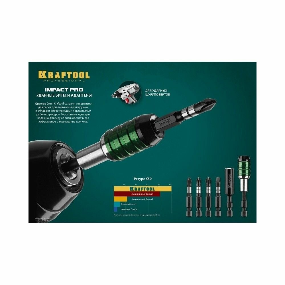 KRAFTOOL Биты KRAFTOOL Impact Pro, Philips, тип хвостовика E 1/4", PH2, 50мм, 2шт, на карточке ( 26191-2-50-S2 )