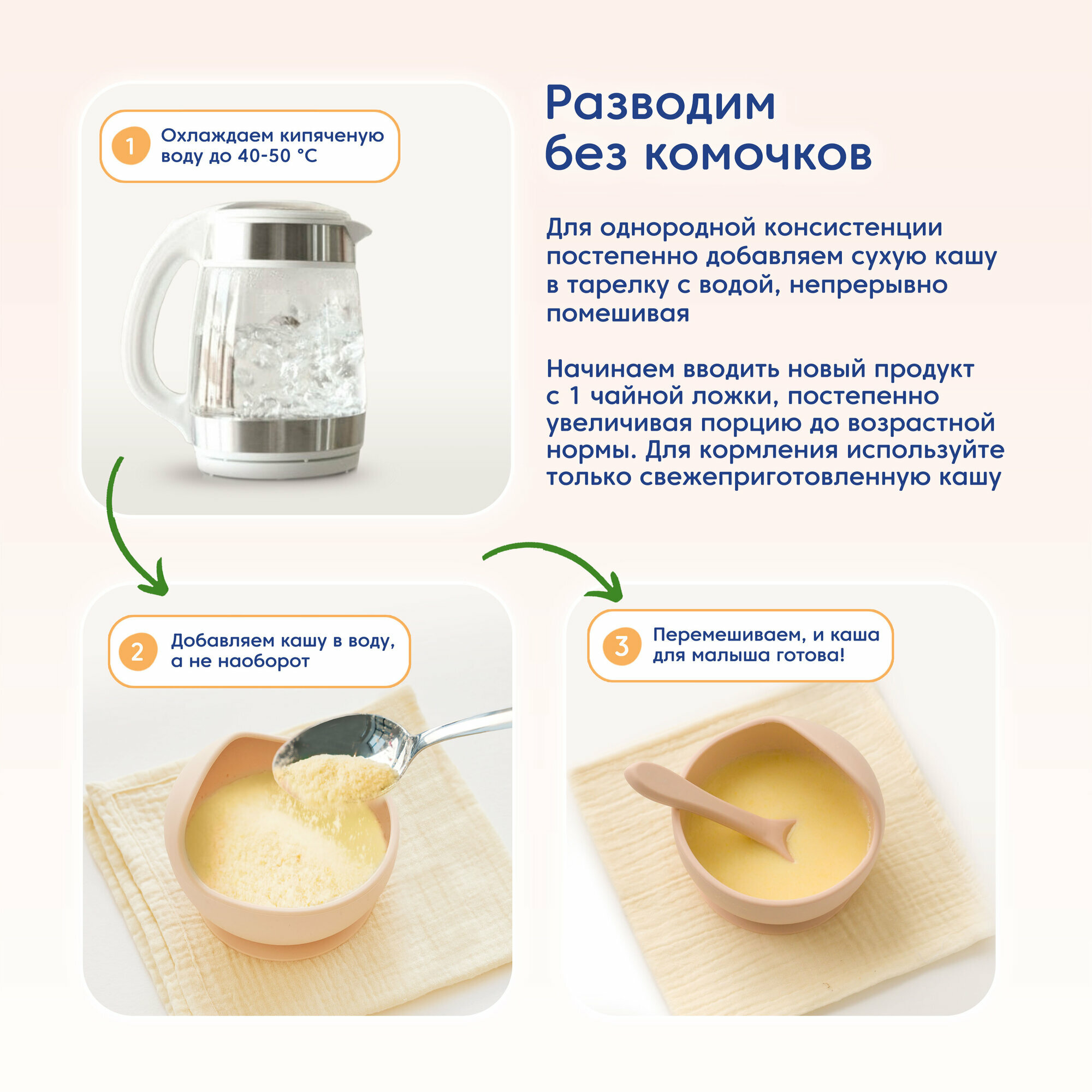 | Отзыв: | С комочками надо бороться) постепенно засыпать и сразу мешать, тогда их не будет, главное приноровится, в остальном всё отлично, ребенок кушает с удовольствием! |