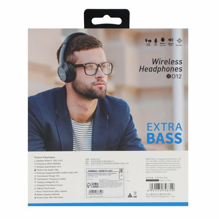 СохранитьНаушники полноразмерные BOROFONE BO12, Extra Bass, bluetooth, AUX, синий (6931474746740) интересное: