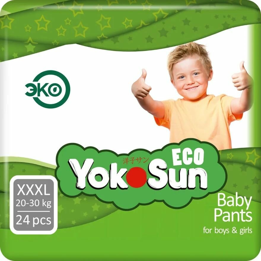 Детские подгузники-трусики YokoSun Eco размер XXXL (20-30 кг), 24 шт.