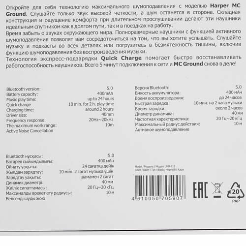 Купить Беспроводные накладные BT наушники с ANC и Quick Charge HARPER HB-712 Черный