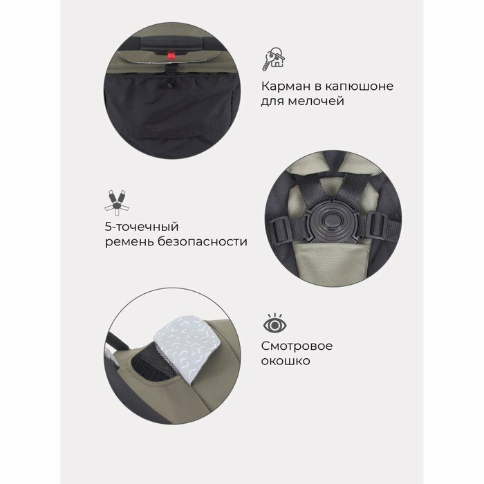 | Особенности | съемный бампер, ремни безопасности, горизонтальное положение спинки, регулировка высоты подножки, мягкие накладки на ремни, смотровое окно |