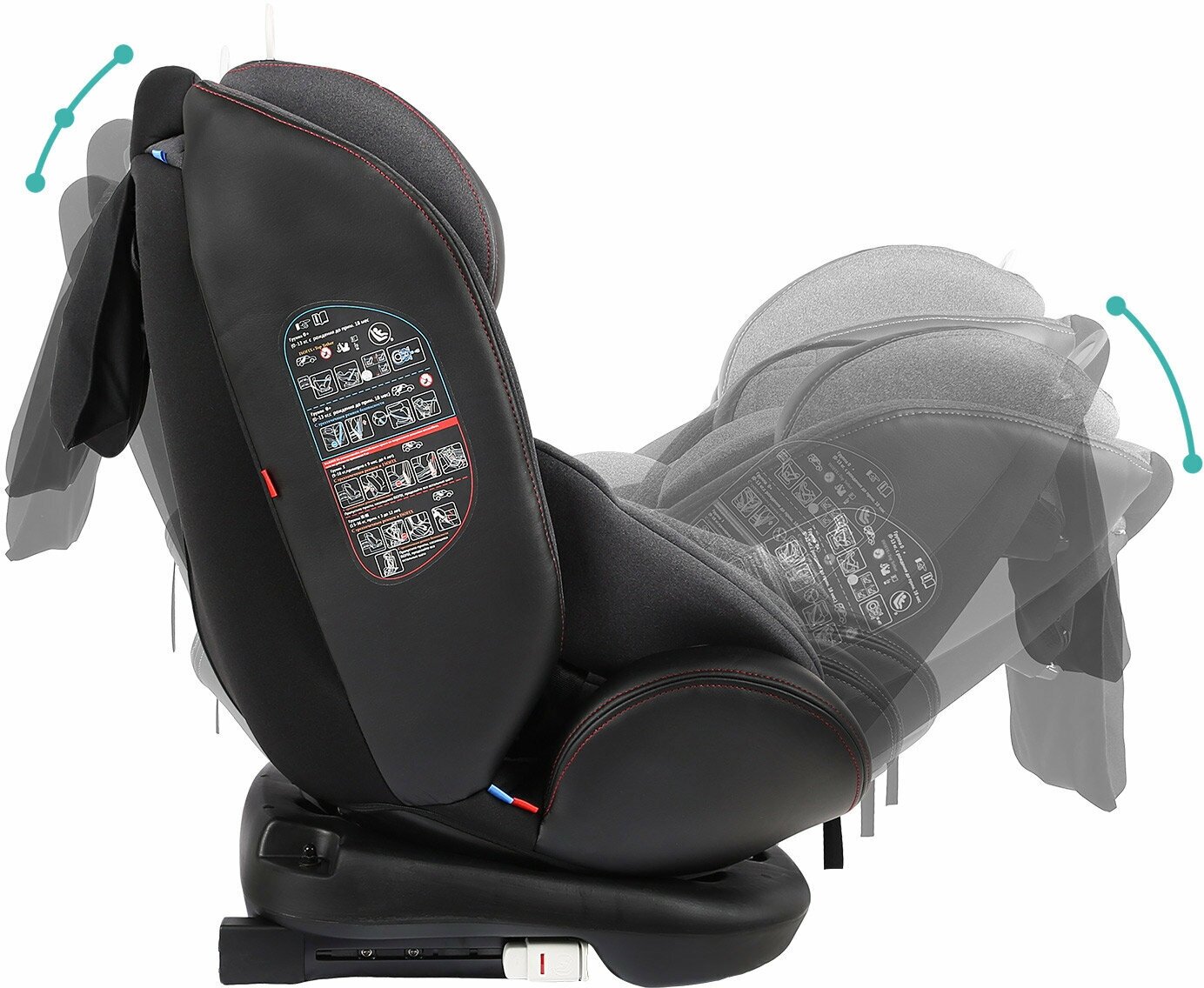 Автокресло Indigo AERO ISOFIX растущее поворотное, 0-36 кг, черный, красный