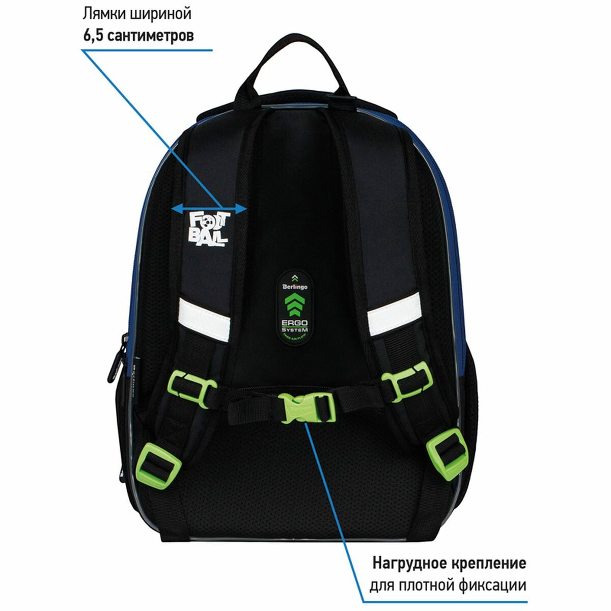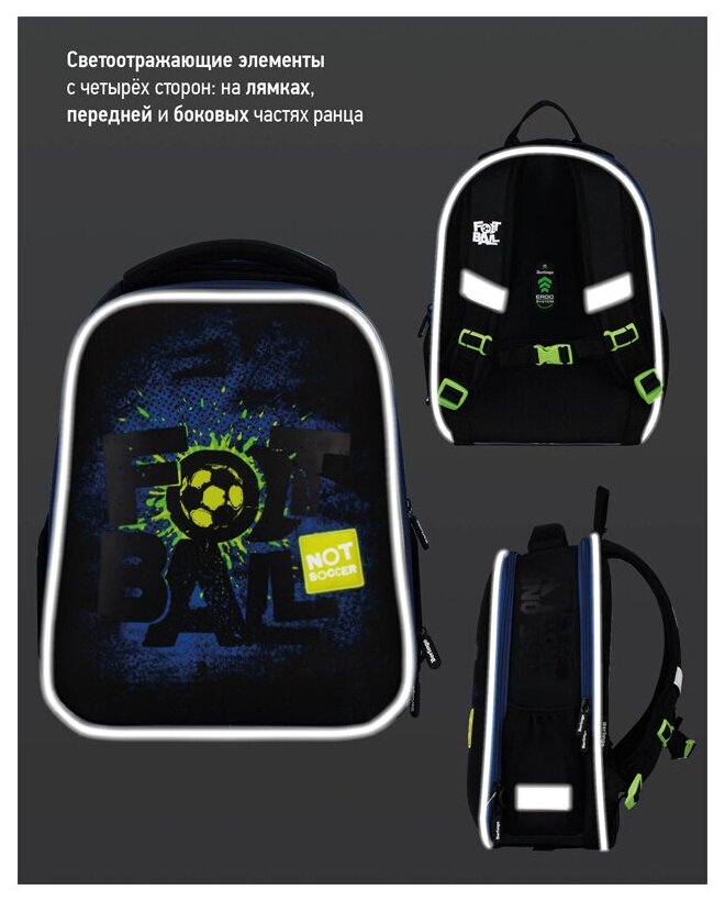 Ранец Berlingo Expert Mini «Football» 36×27×14см, 2 отделения, 2 кармана, анатомическая спинка, мешок для обуви