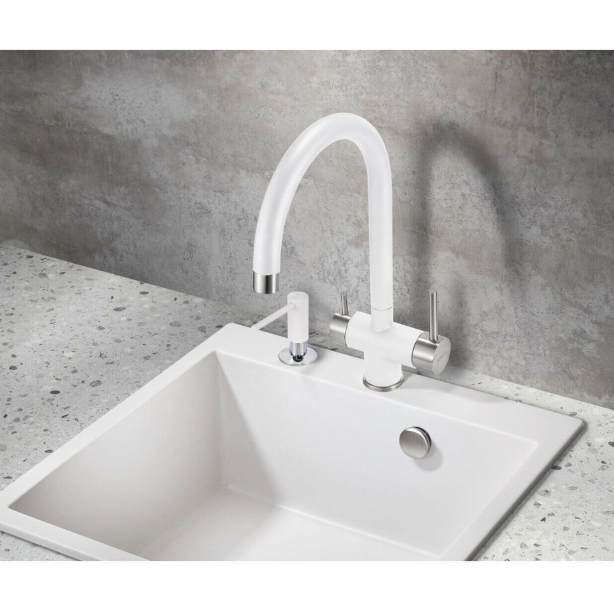 Смеситель для кухни Milacio Ultra с подключением фильтра, белый (MCU.554.WH)