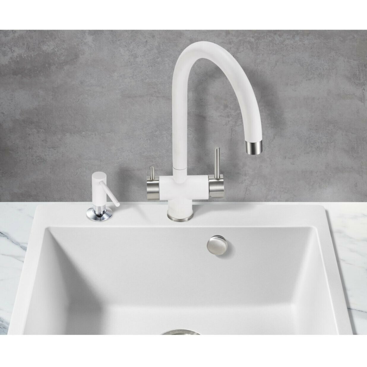 СохранитьСмеситель для кухни под фильтр с краном для питьевой воды (2в1) Milacio Ultra ( MCU.554.WH ) белый интересное: