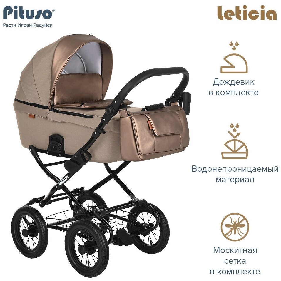 Коляска Pituso Leticia Classic Кожа 12d Cappucino+Кожа Brown Metalic
