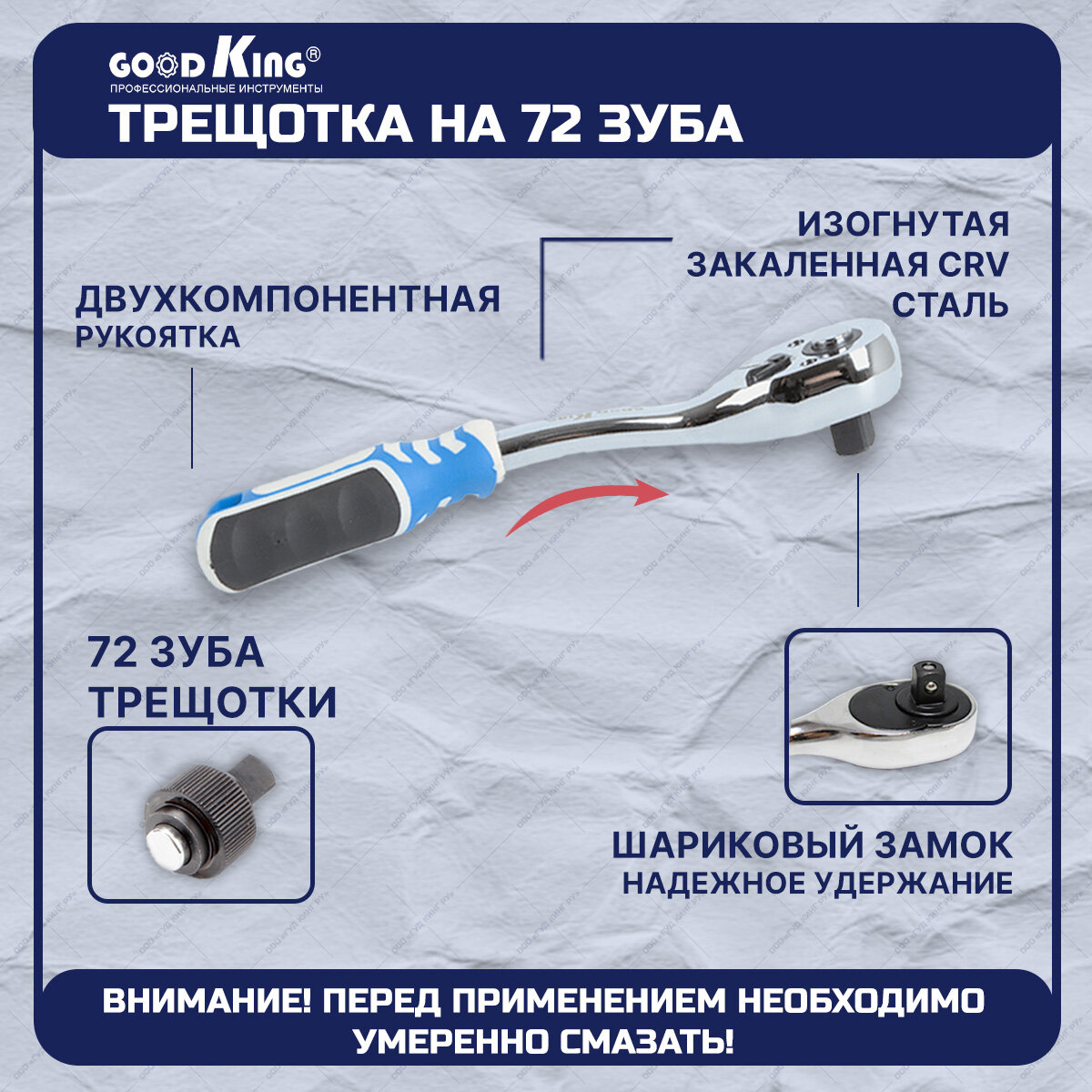 | Плюсы: | Компактный, 72 зуба, длинные головки, хромированое покрытие, изогнутая ручка трещетки. |