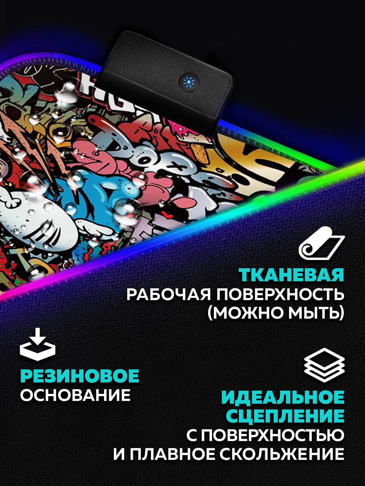 Коврик для мышки 35*25 игровой с подсветкой на резиновой основе для геймеров OT-PCM55 Граффити Орбита интересное: