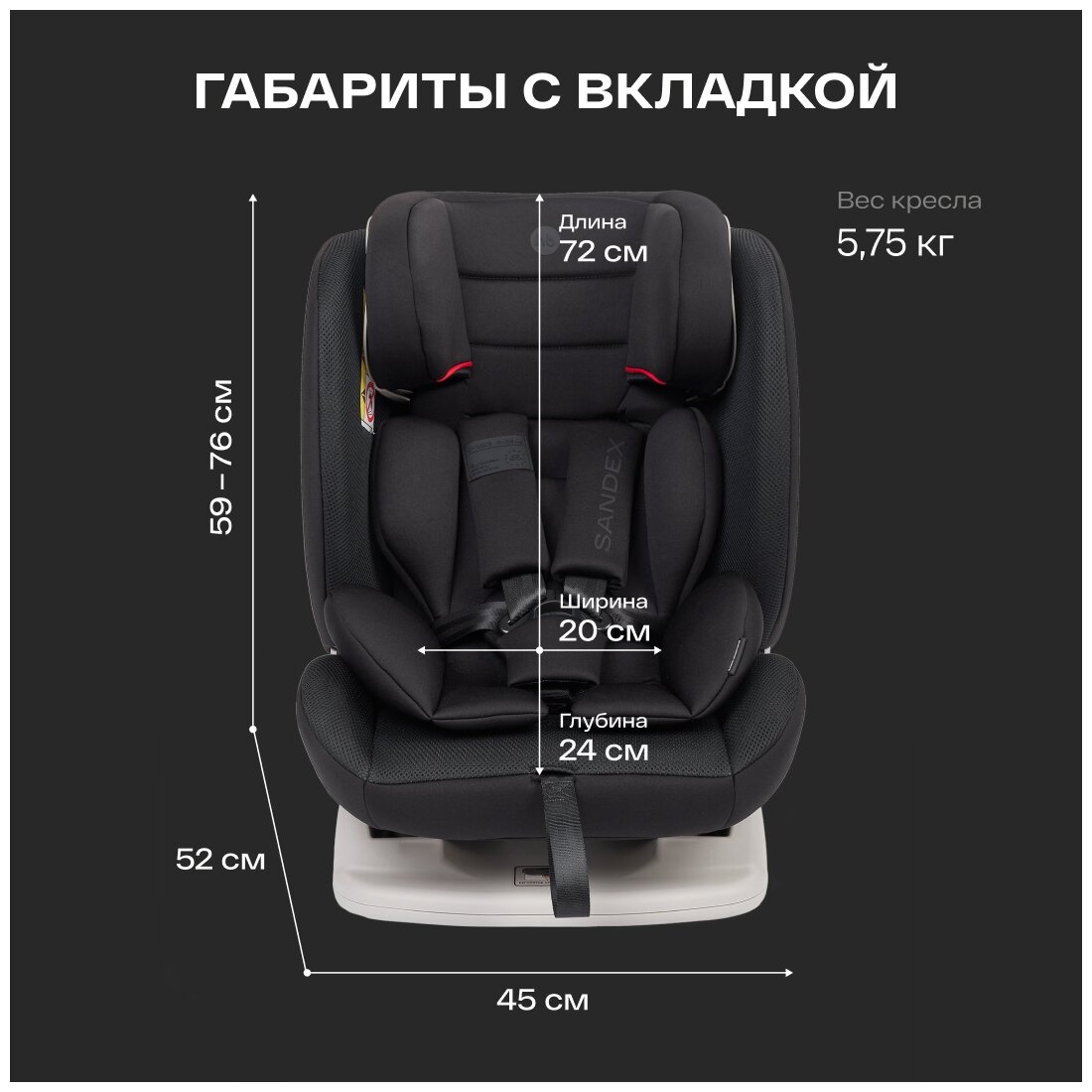 Автокресло Happy Baby детское Sandex, 0-12 лет, группа 0/1/2/3, (0-36 кг), черное
