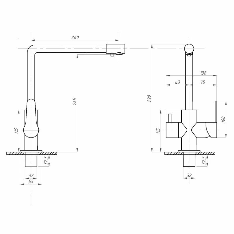 Смеситель для кухни с подключением к фильтру ПСМ-Профсан Steel PSM-300-22