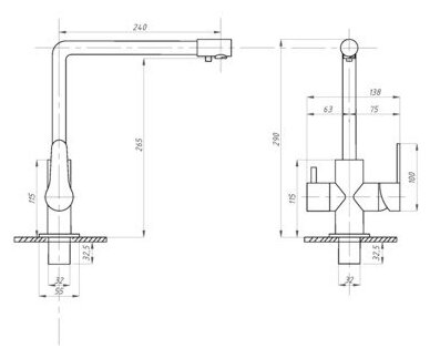 Смеситель ПрофСан Steel PSM-300-22 с фильтром для питьевой воды