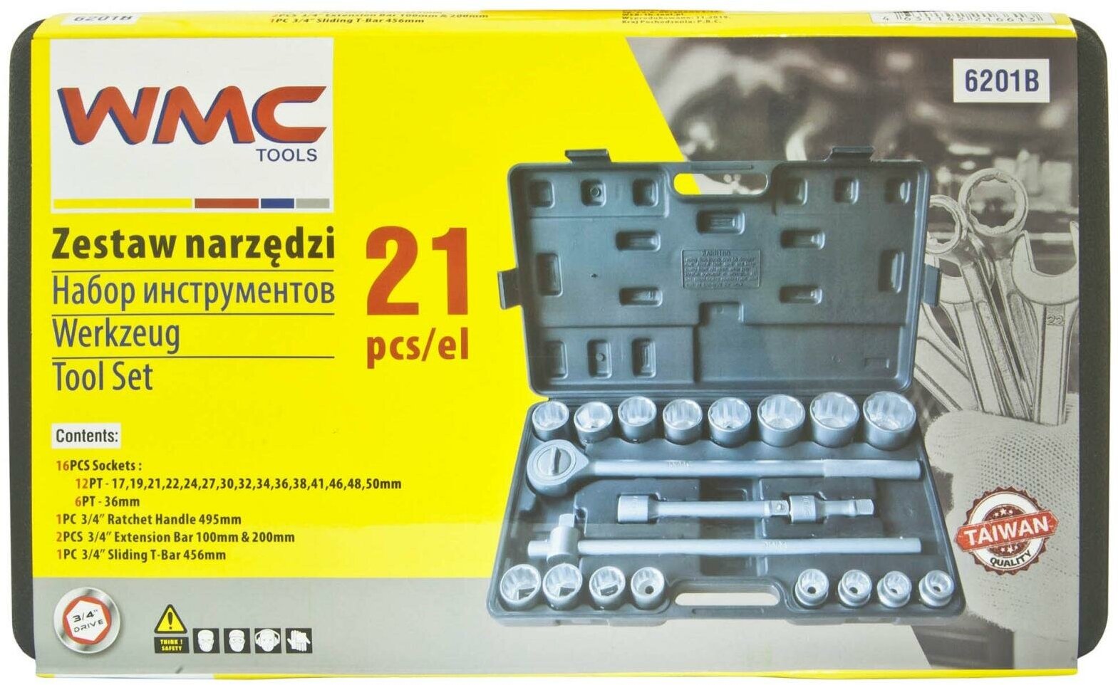 WMC-6201B Набор инструментов 21пр 3/4"(12гр)(17,19,21,22,24,27,30,32,34,36,36-6гр.,38,41,46,48,50мм)