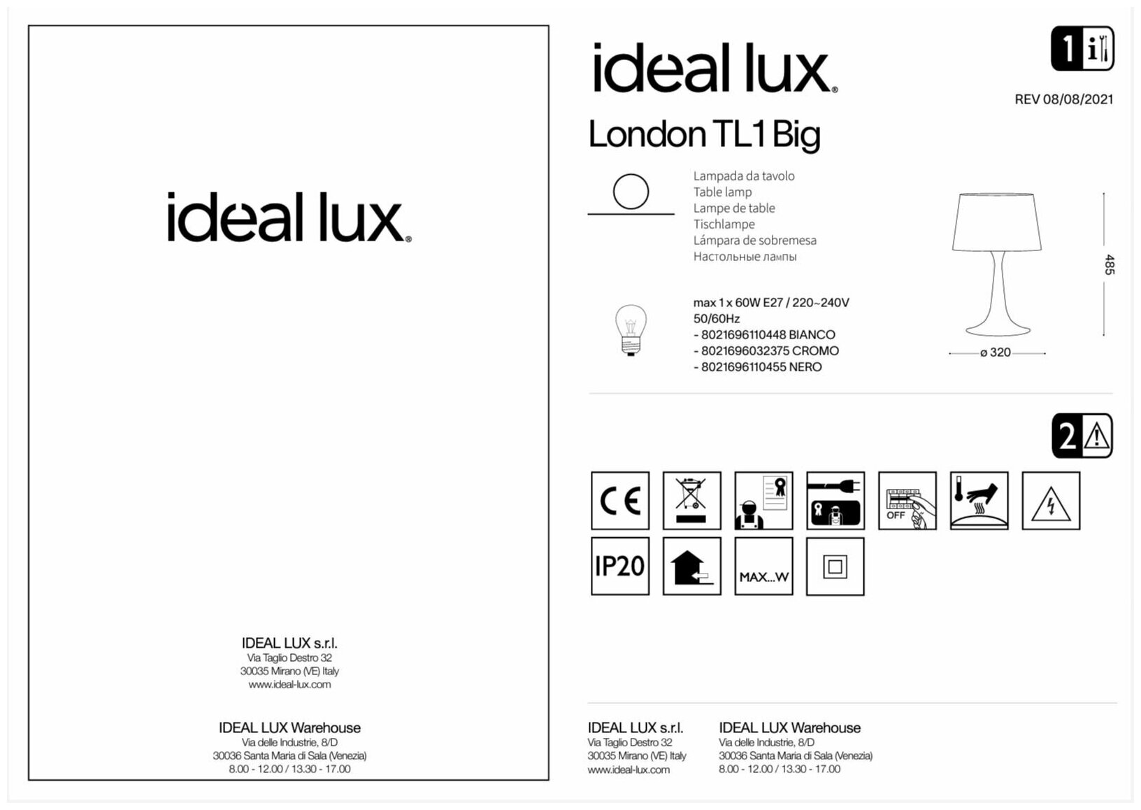 Ideal Lux Настольная лампа Ideal Lux London TL1 Big Nero 110455