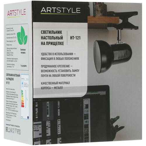 Светильник настольный на прищепке HT-121B, ARTSTYLE, черный, металл., E27