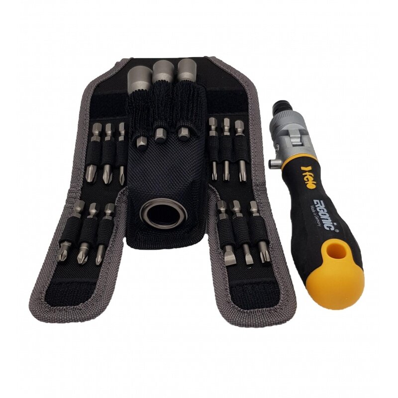 Трещотка FELO 6 071 604 поворотная ergonic k с набором бит в чехле, 16 шт