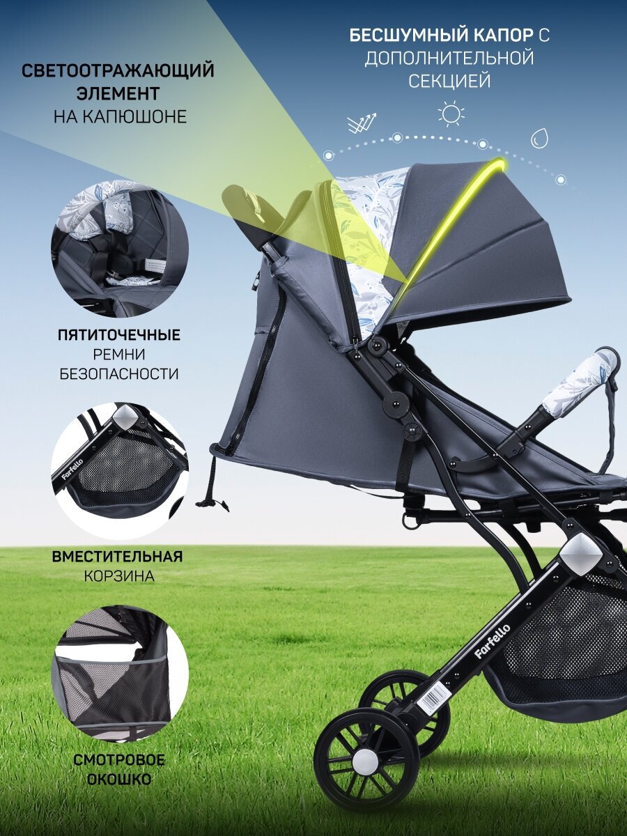 Прогулочная коляска детская Farfello Comfy Go / легкая / для путешествий / цвет серый разноцветный