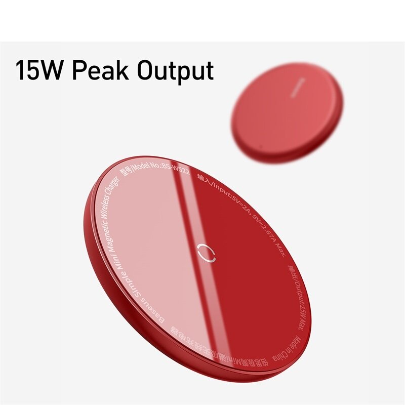 Купить Беспроводное зарядное устройство Baseus Simple Mini Magnetic Wireless Charger (suit for IP12 with Type-C cable 1.5m) Red (WXJK-H09)