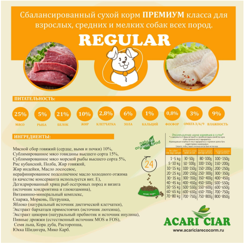 Сухой корм для собак Acari Ciar Regular (медиум гранула) 2.5 кг.