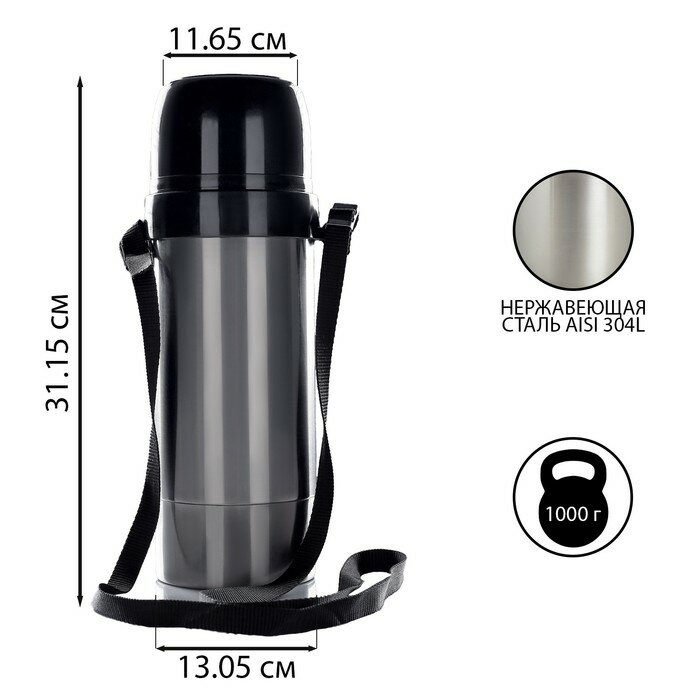 Термос "Дорожный" 1с669, с узким горлом, 1.5 л, 56 ℃, 24 ч, на ремне