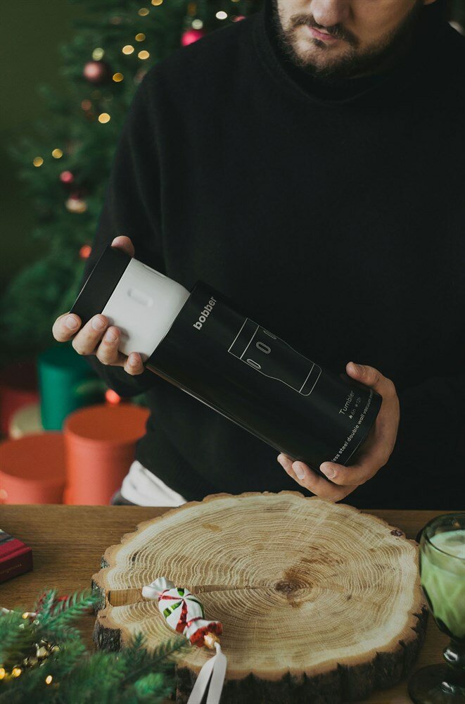 Термокружка Tumbler для кофе и чая 350 мл черная/Bobber нержавеющая сталь/подарочная