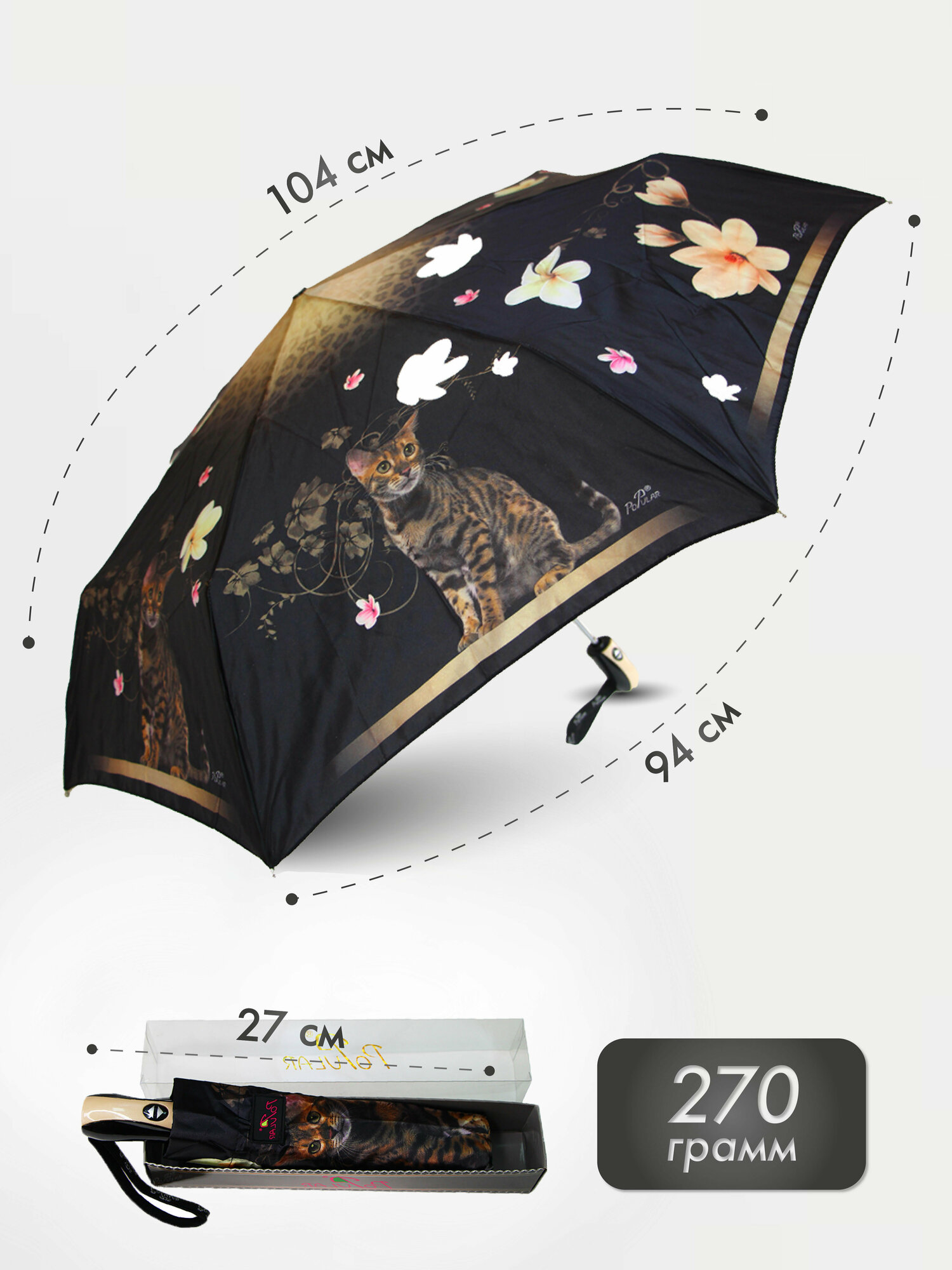 Зонт "Три Слона" женский №310-5, купол D=103 см, 10 спиц, суперавтомат бежево-черный