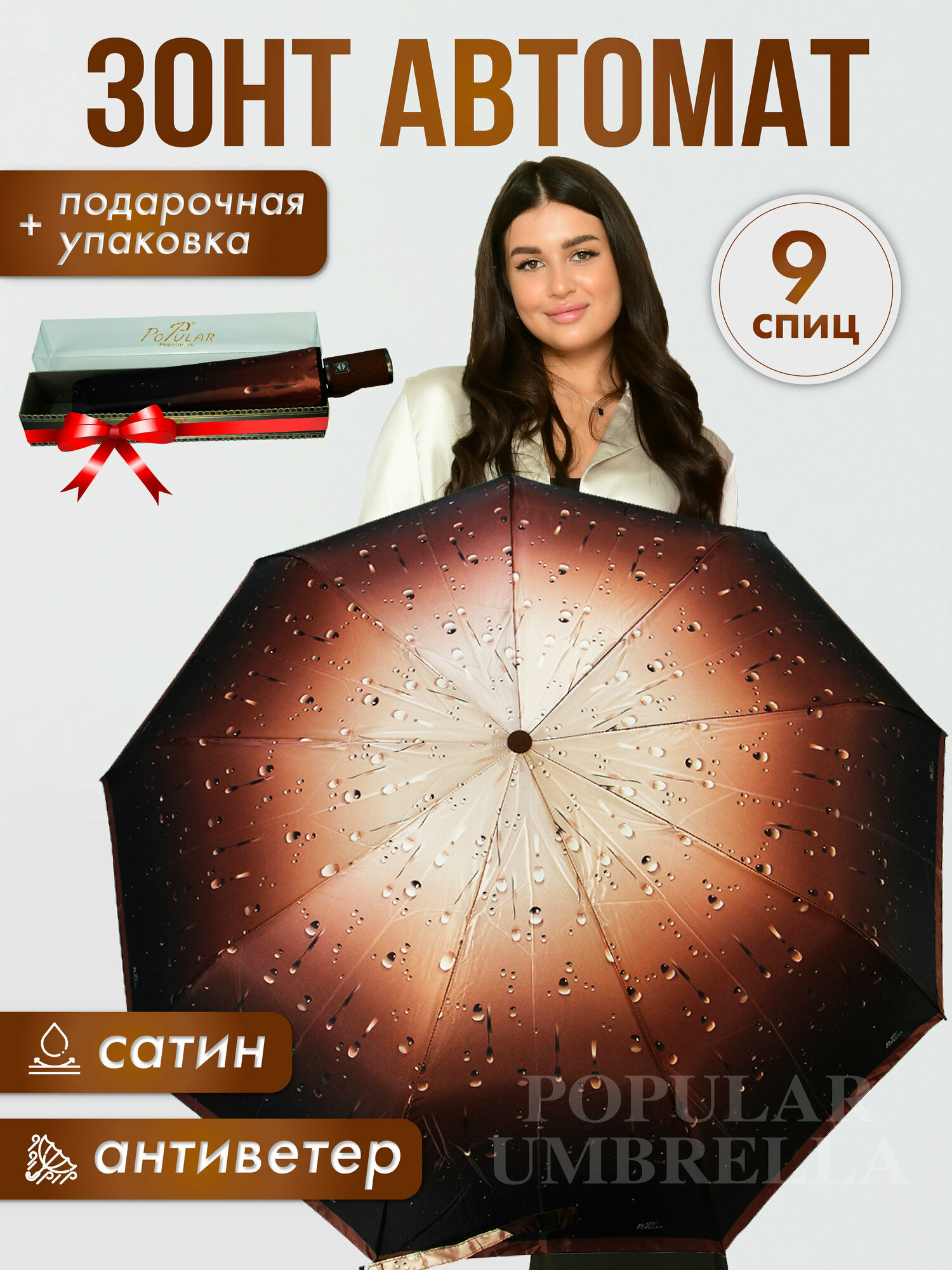 Женский складной зонт Popular umbrella автомат, 201/шоколадный