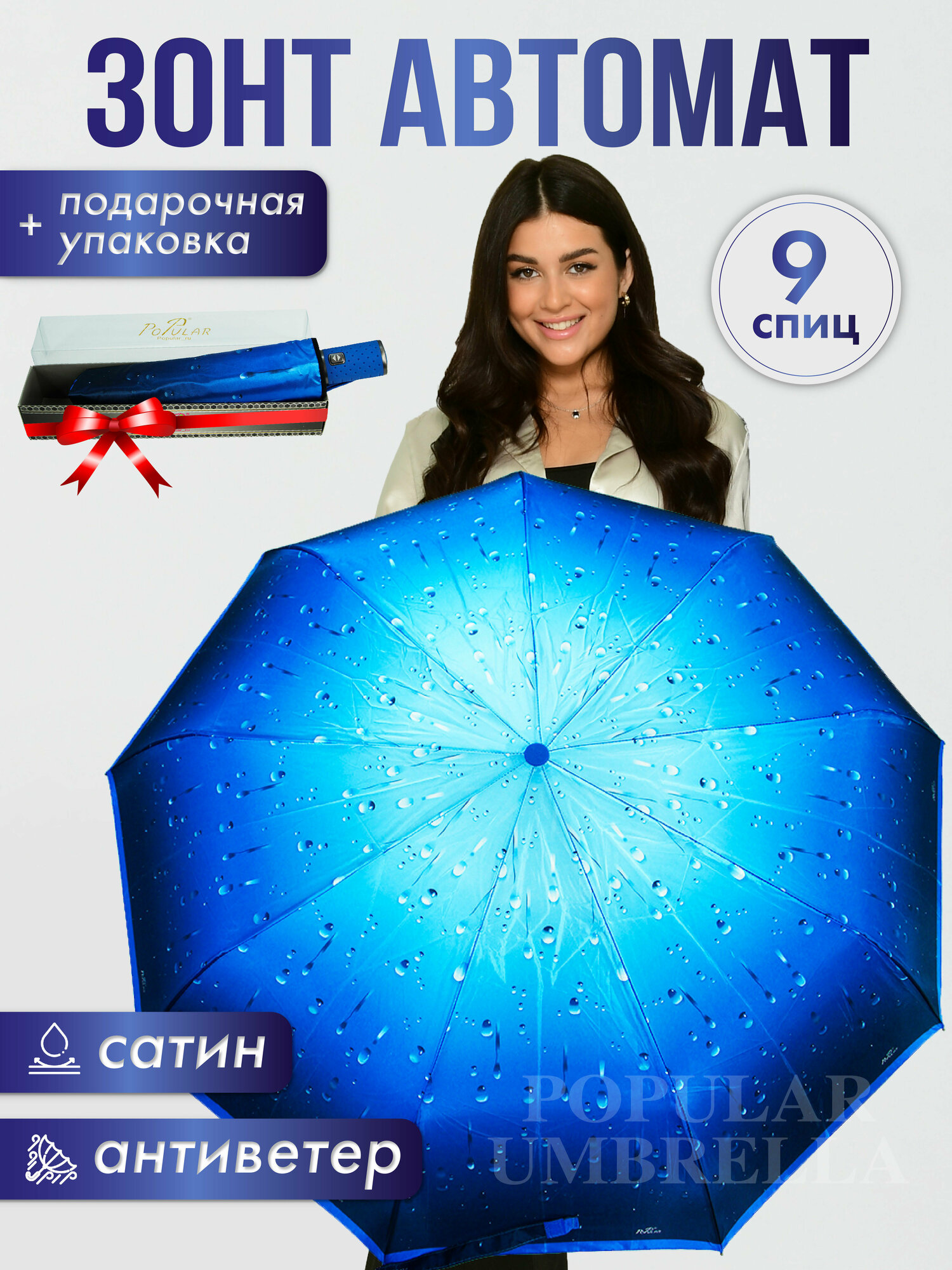 Зонт женский автомат, зонтик взрослый складной антиветер 201/синий