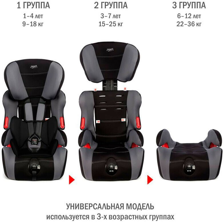 Автокресло Siger космо Lux, гр. 1+2+3 (9-36кг), серый