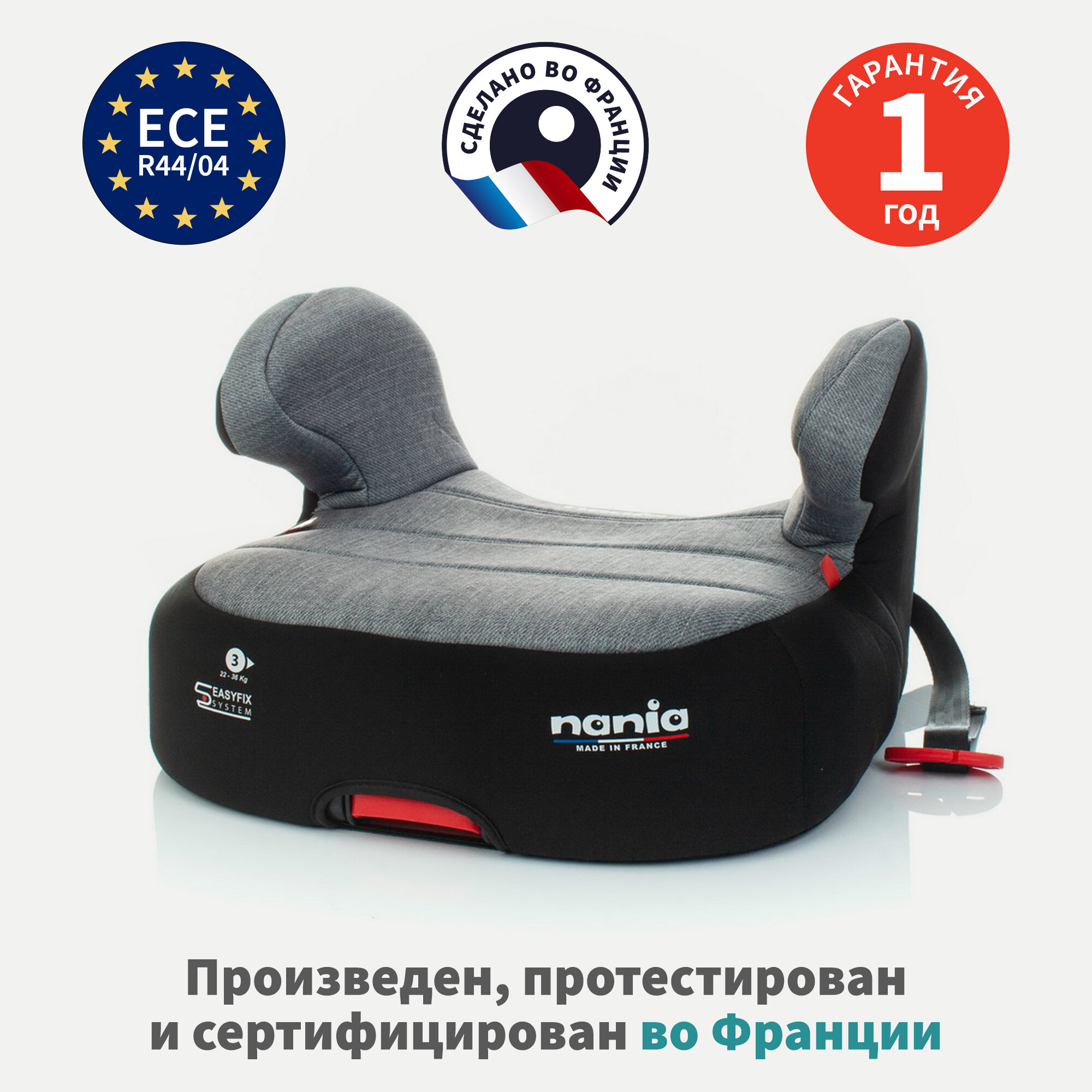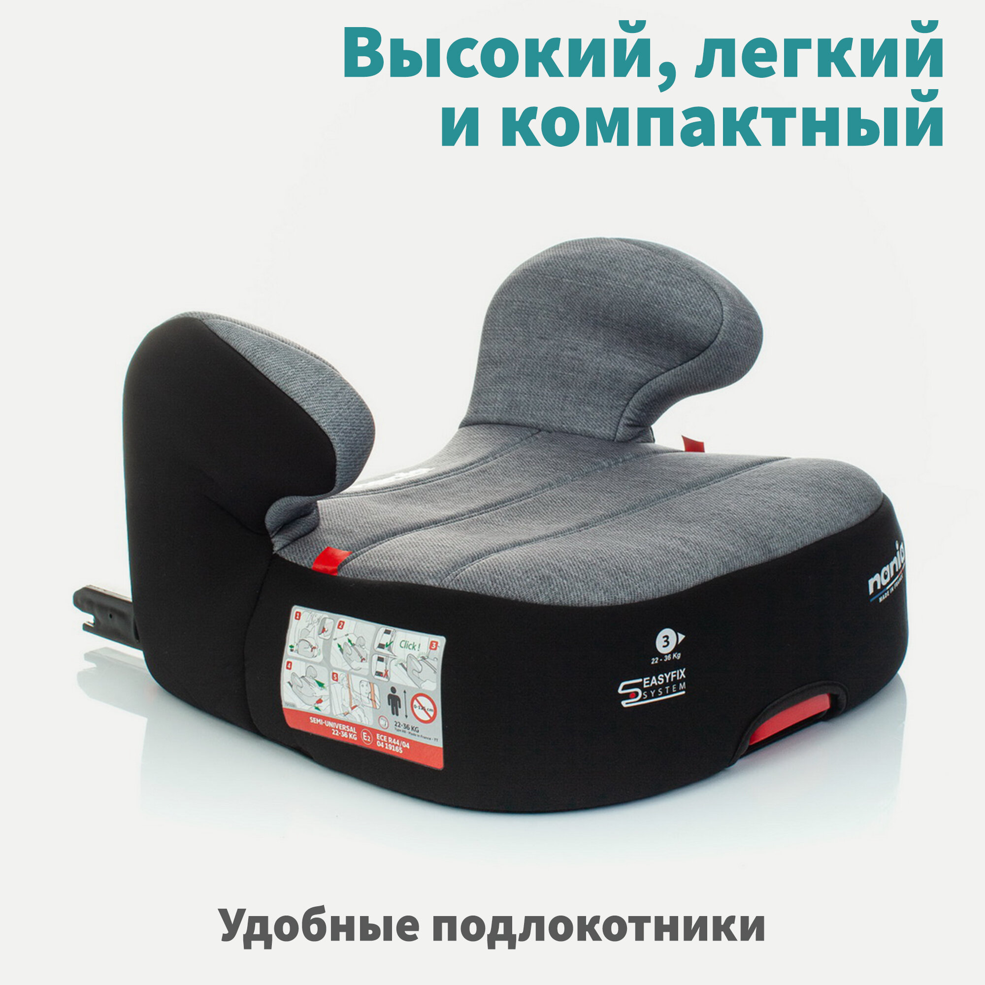 Детское автокресло - бустер автомобильный NANIA DREAM EASYFIX Denim Luxe Grey от 6 до 12 лет, 15-36 кг., серый интересное: