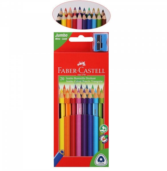Купить Карандаши цветные Faber-Castell "Jumbo" 20цв., трехгран., утолщ., заточен., картон, с точил., 116520