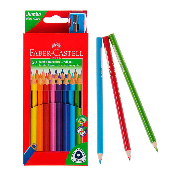 Карандаши цветные Faber-Castell "Jumbo" 20цв., трехгран., утолщ., заточен., картон, с точил., 116520 интересное: