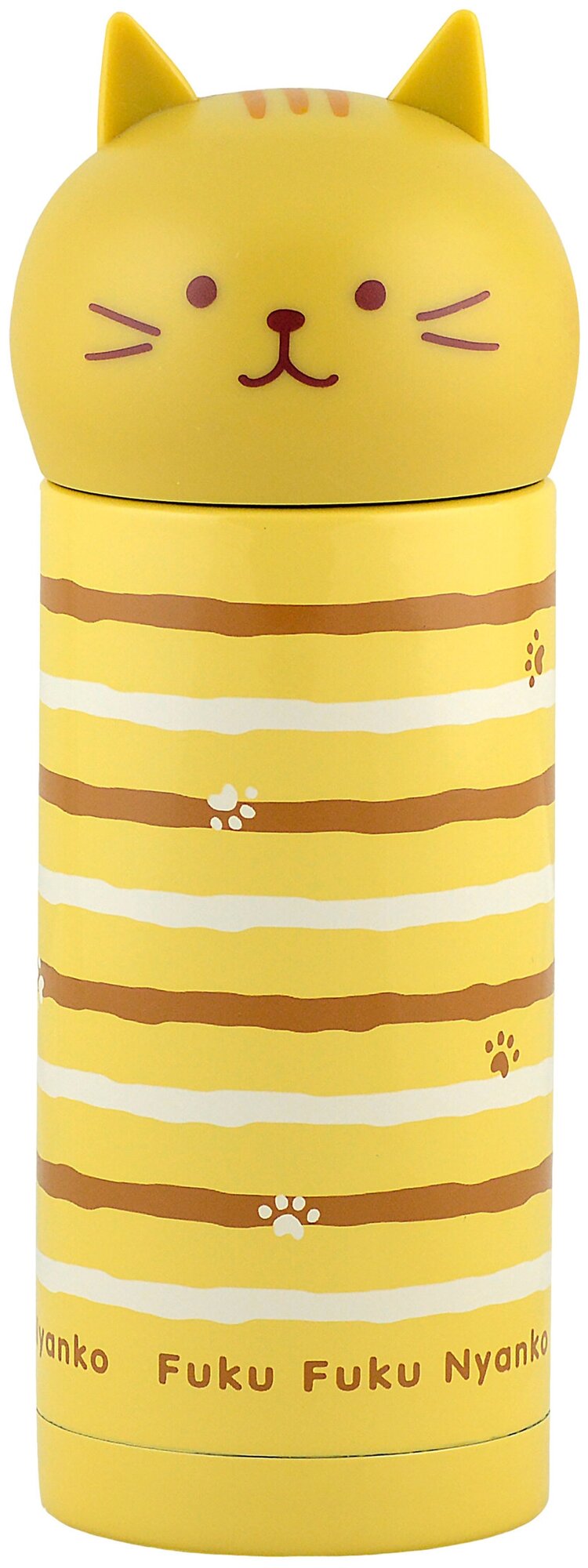 | Отзыв: | Цвет не желтый, а бежевато-коричневый. Помещается в сумочку. Беру на прогулку. Крышка -голова котика - завинчивающаяся , не чашка, пить можно только из горлышка самого термоса, но это даже удобнее. |