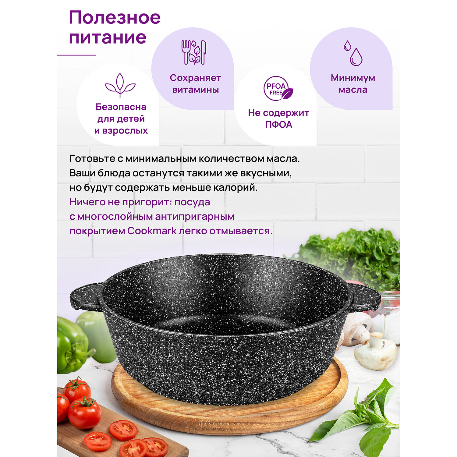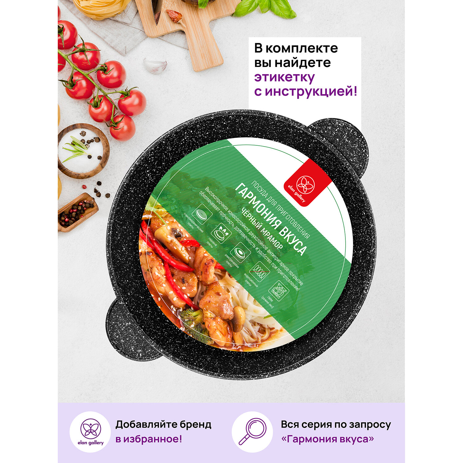 Жаровня-сотейник 4,5 л 28 см Elan Gallery гармония вкуса Черный мрамор с крышкой толстостенная из литого алюминия с двухслойным антипригарным покрытием Идеальный подарок на Новый год, Рождество, День Рождения и 8 марта