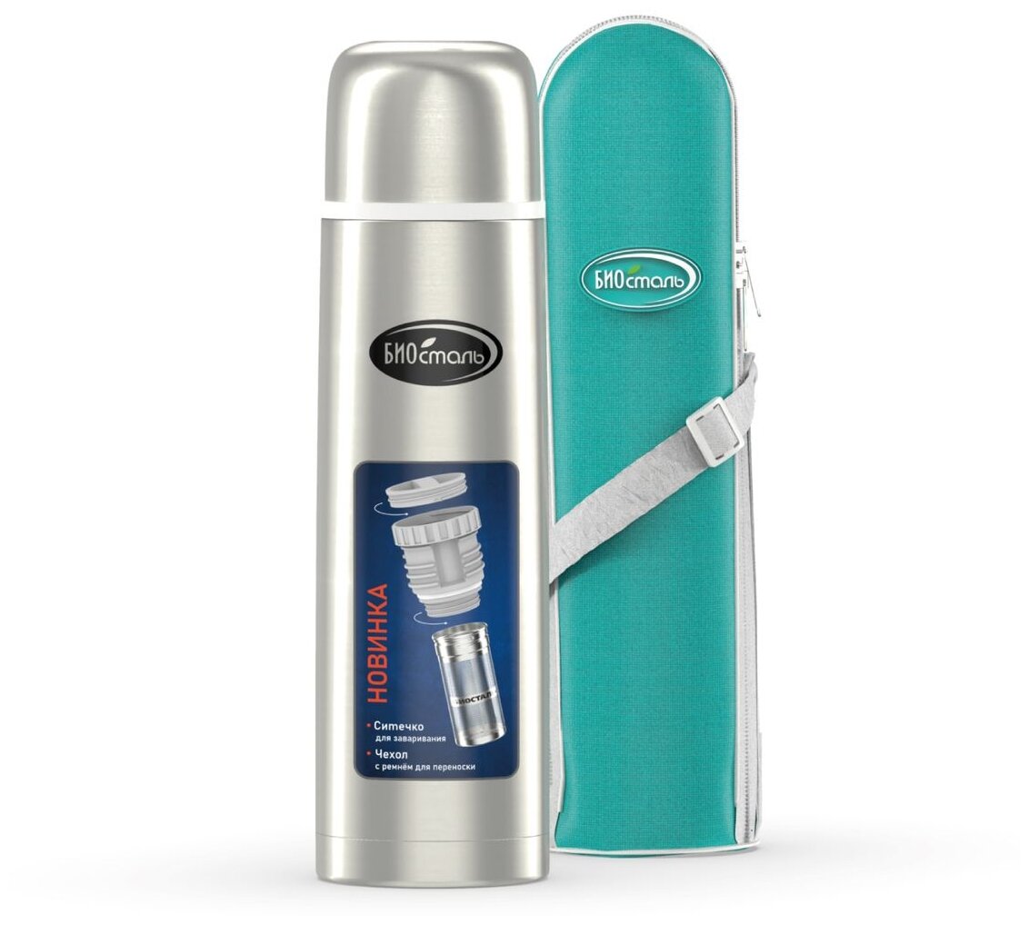 Термос Biostal (0,75 литра), с ситечком и чехлом, стальной