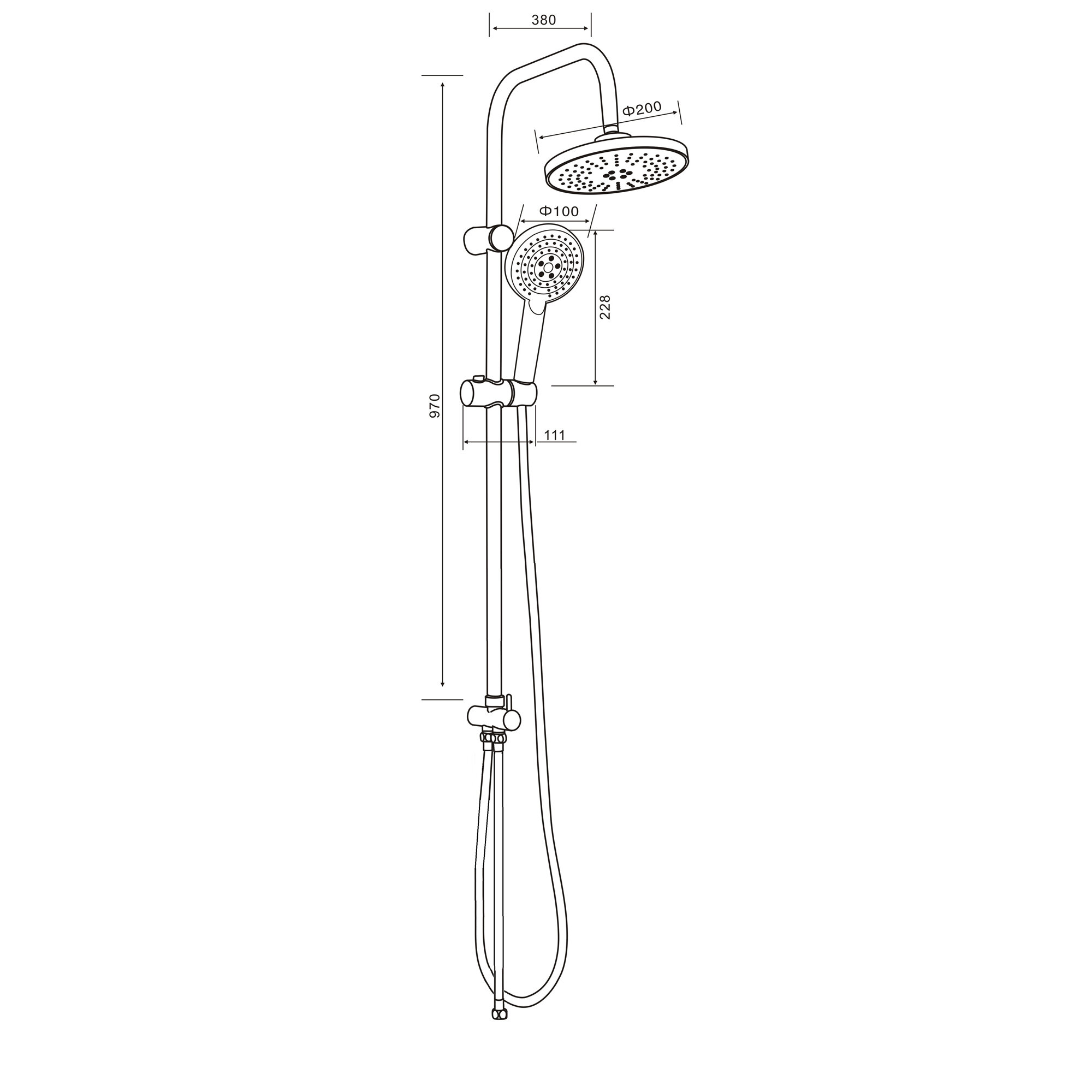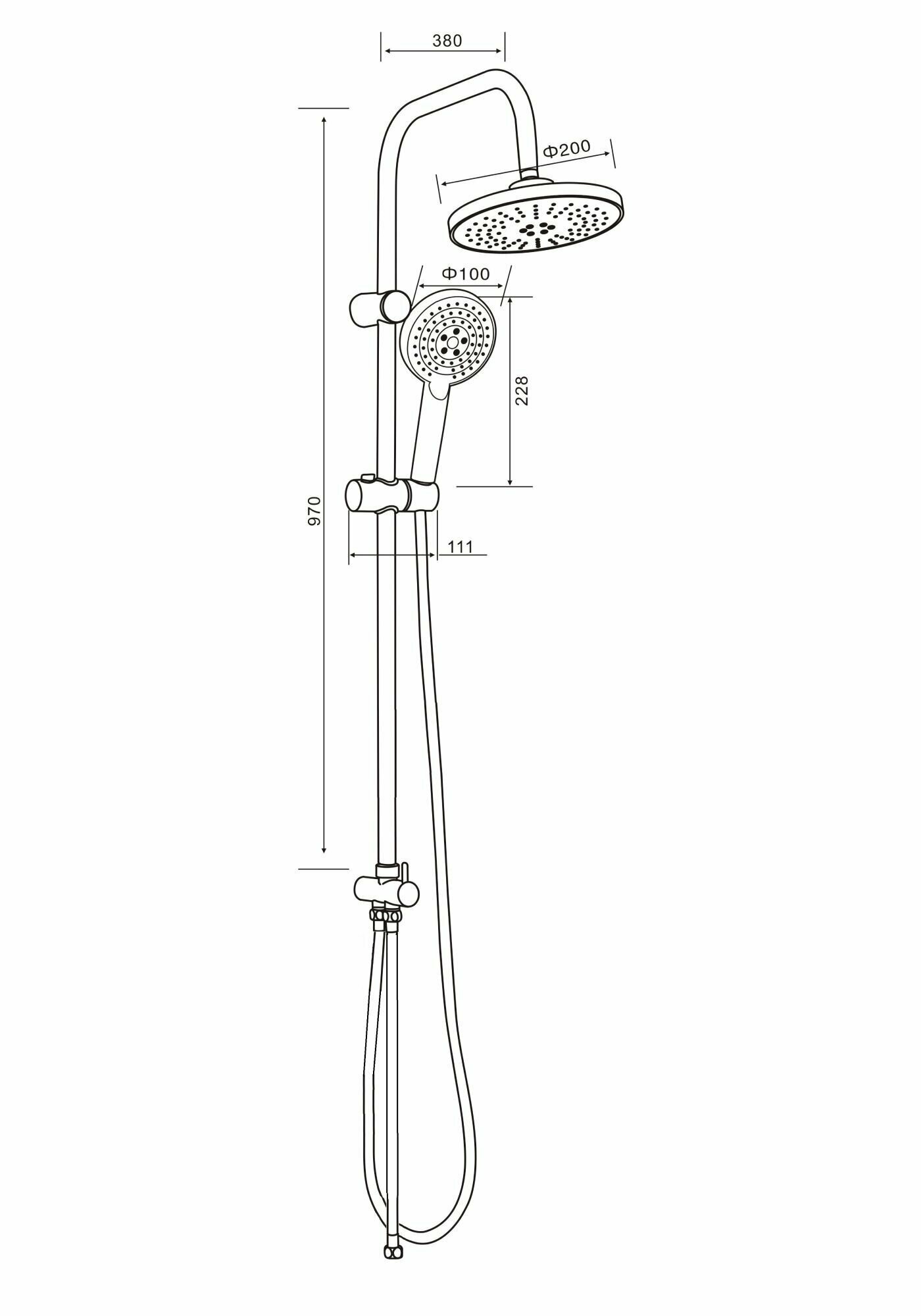 | Диаметр верхнего душа | 200 мм |