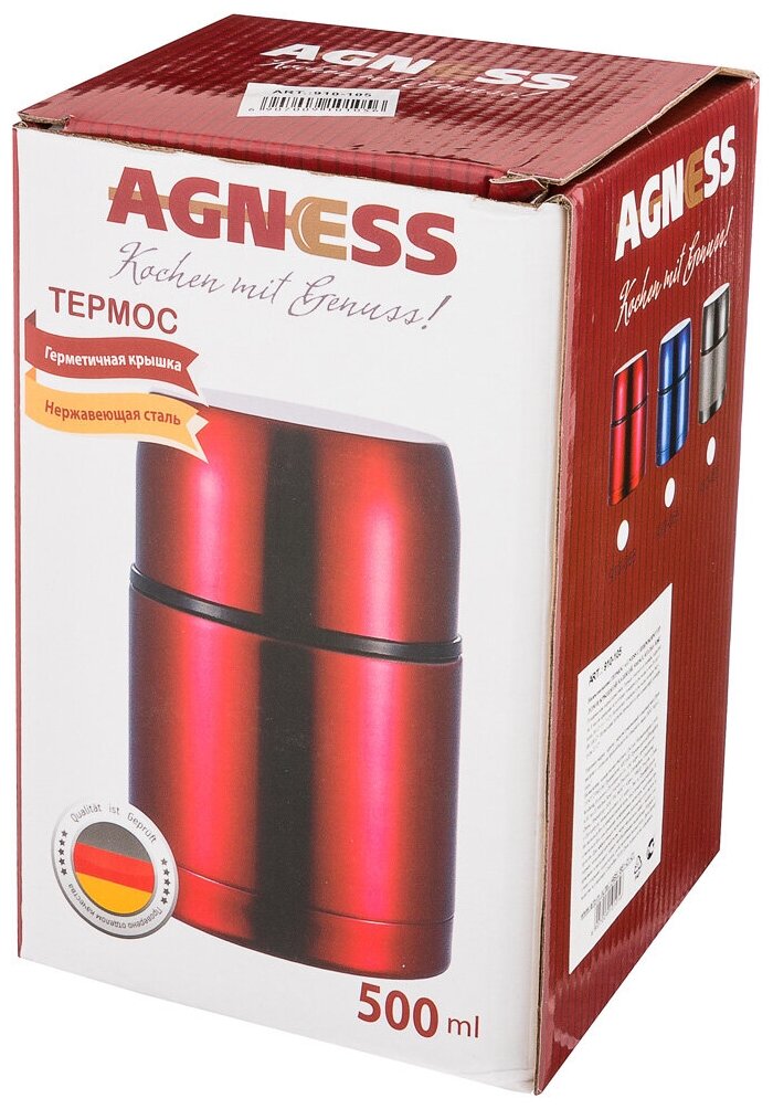 Купить Термос AGNESS с широким горлом и крышкой-чашкой, 500 мл