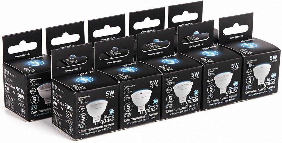 Упаковка светодиодных ламп 5 шт Gauss MR16 5W 530lm 4100K GU5.3 LED 101505205