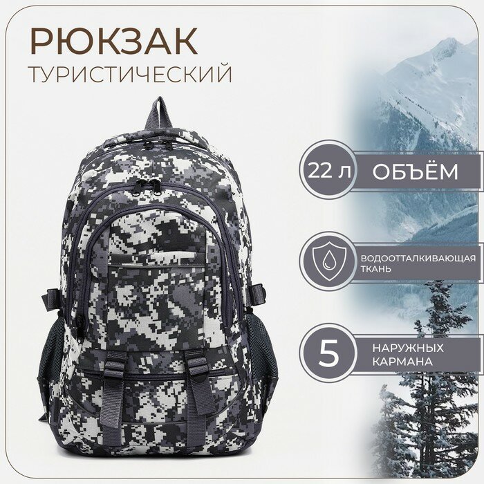 Зфтс Рюкзак туристический, 22 л, 2 отдела на молнии, 5 наружных карманов, цвет серый/камуфляж интересное: